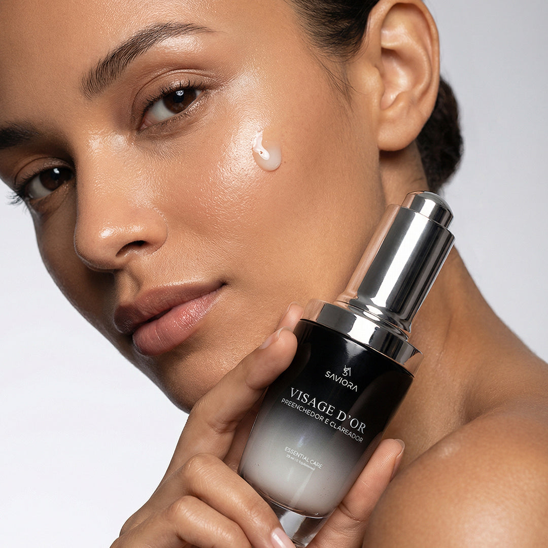 - Sérum Visage D’or: Indicado para o uso noturno, ajuda a clarear manchas, reduzir linhas finas e melhorar a textura da pele.