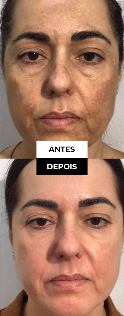 - Clareamento contínuo → redução visível de manchas e melasma